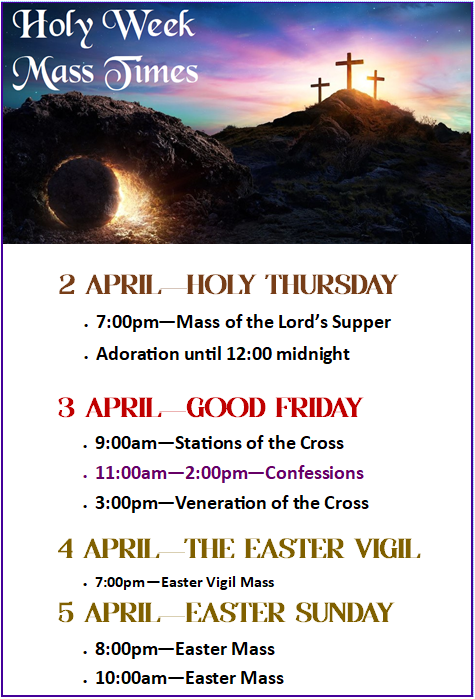Also, during our Wednesday evening Adoration & Benecition at 6:00pm, the Sacrament of Reconciliation will be available.